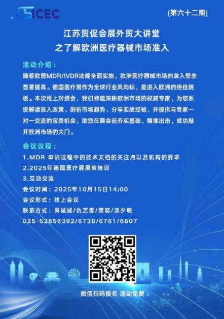 课程预告:江苏贸促会展外贸大讲堂六十二期之了解欧洲医疗器械市场准入