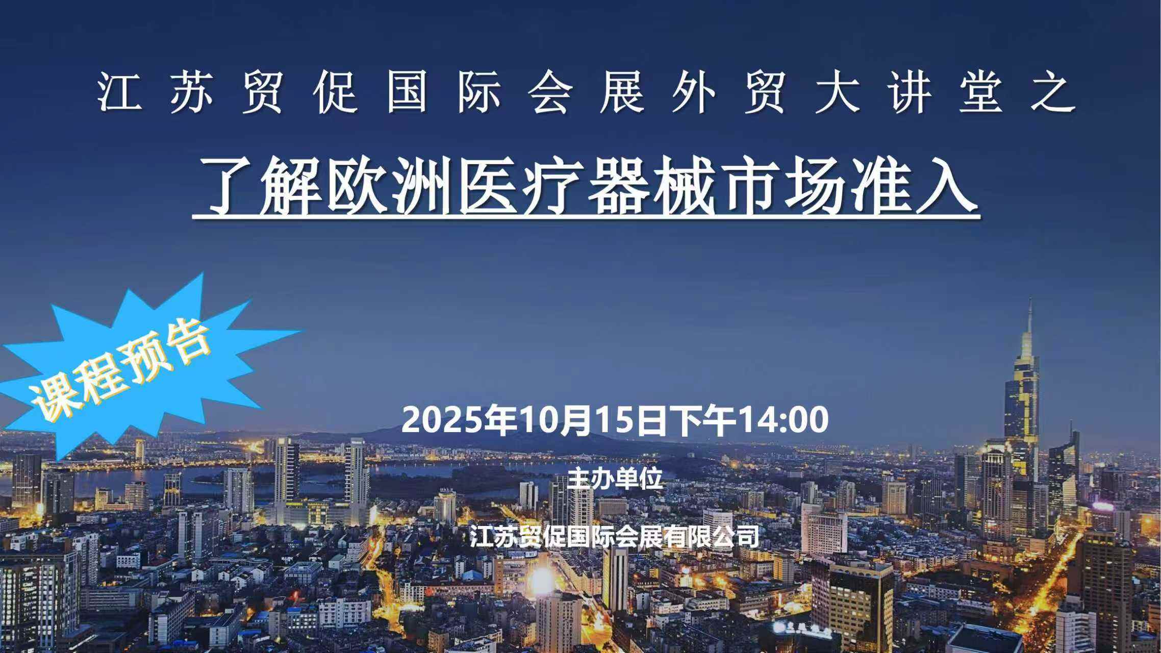 开课啦 | 江苏贸促会展外贸大讲堂第六十二期“了解欧洲医疗器械市场准入”