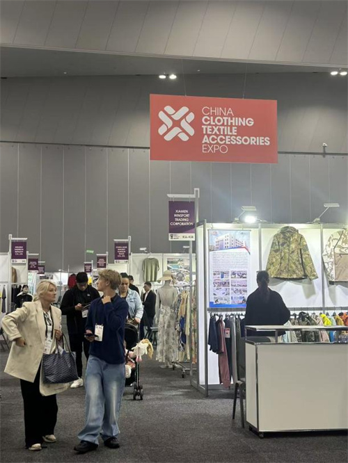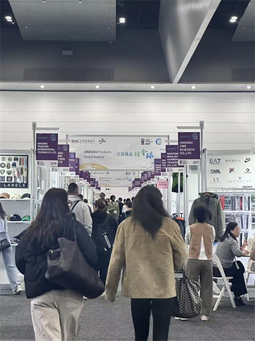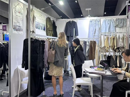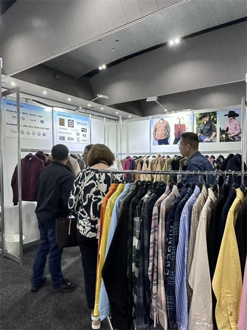 值得一提的是,南京某男装品牌带来的秋季新款衬衫、休闲夹克成为展会焦点。其衬衫采用高支棉混纺面料,兼具抗皱性与透气性,适配澳洲商务休闲场景;夹克则融入防水防风科技,色彩以大地色系为主打,契合当地审美偏好。展位现场人气高涨,采购商络绎不绝,不少买家现场触摸面料、试穿版型,对产品细节与设计理念高度认可。