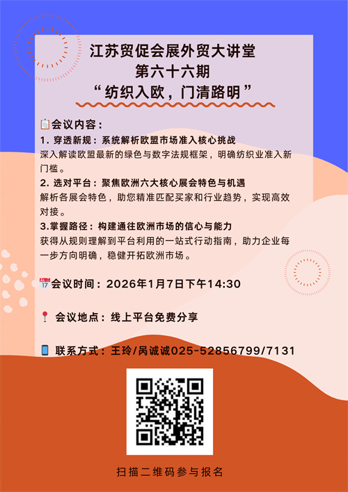 课程预告:江苏贸促会展外贸大讲堂第六十六期“纺织入欧,门清路明”